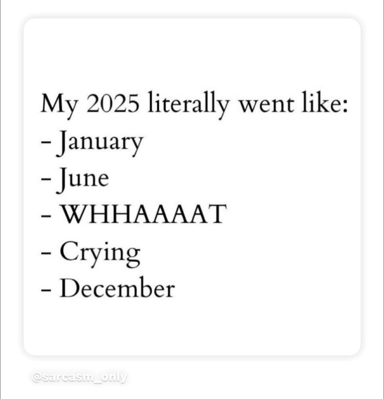 Ich habe diese Woche ein Posting bei Instagram gesehen. In schlichter schwarzweiß Typo stand da: My 2025 literally went like this: Januar, June, Whhhhat, Crying, Christmas. Ich musste so lachen – und hatte Tränen in den Augen. Denn genau so fühlt sich mein Jahr an…